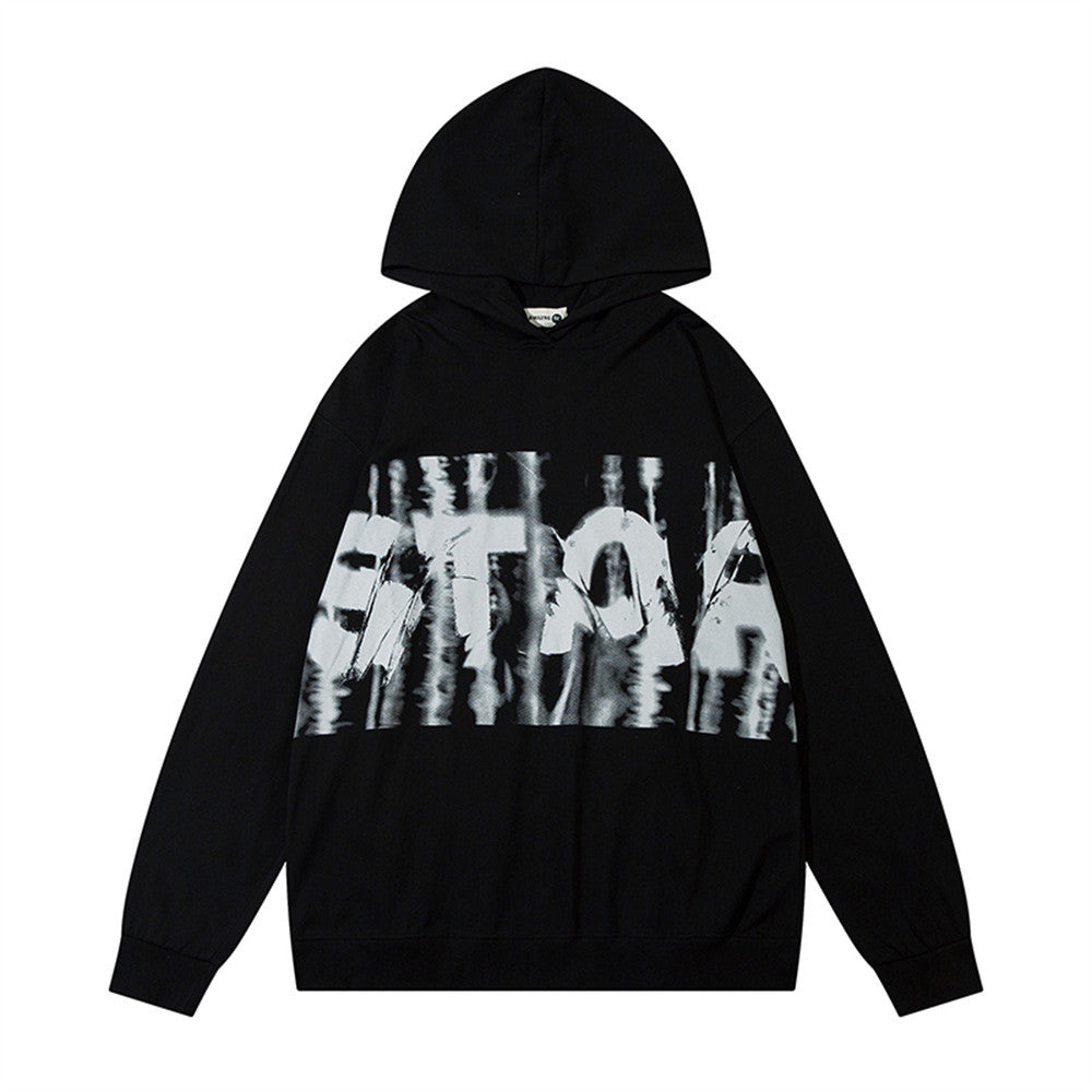 Printed Hooded Long Sleeve T-shirt Men