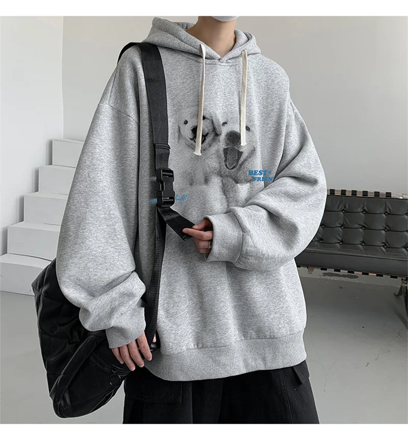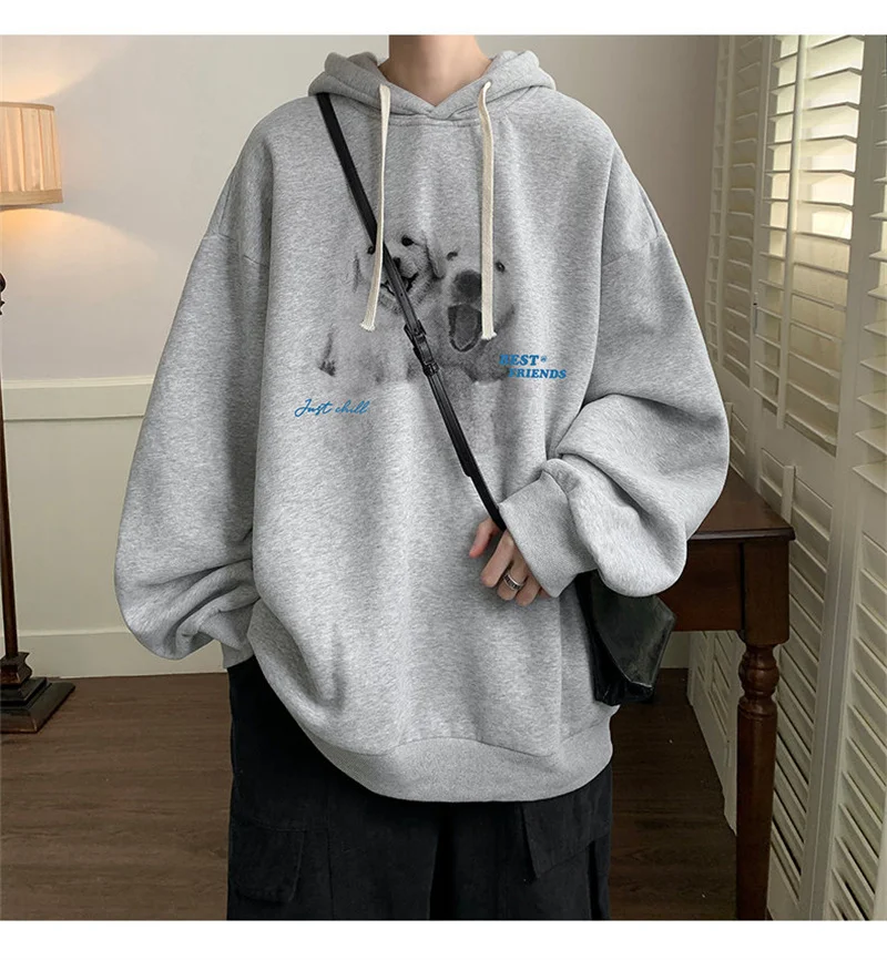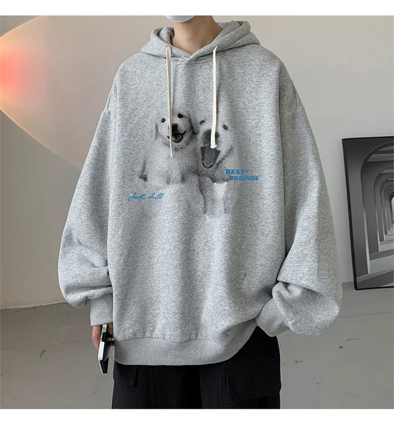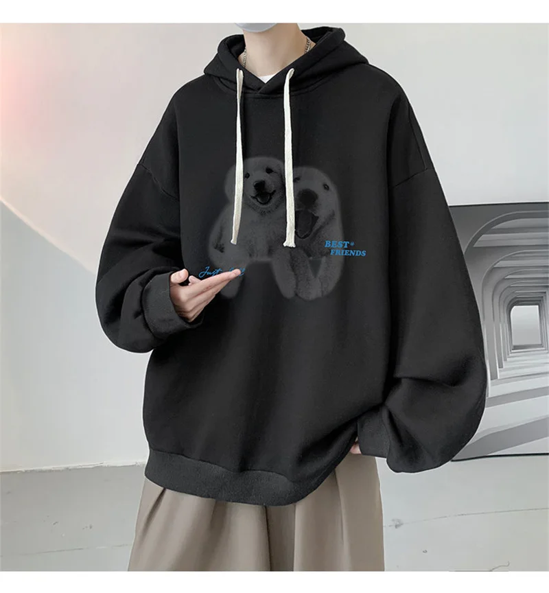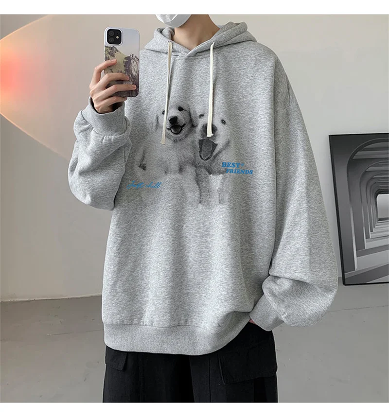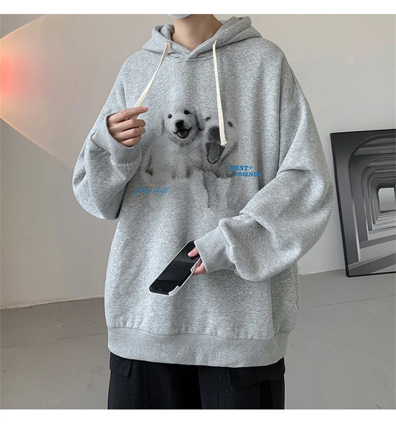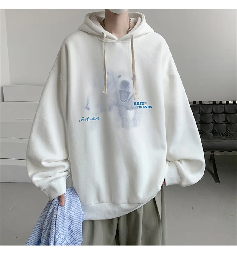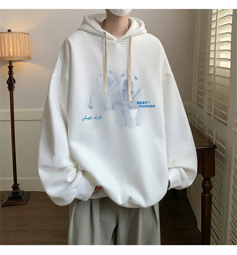Funny Men's Oversized Hoodie Off White 7XL Hoodies with Hat Oversize for Men Dog Print Man Casual Wear Hoody Male Sweatshirt
