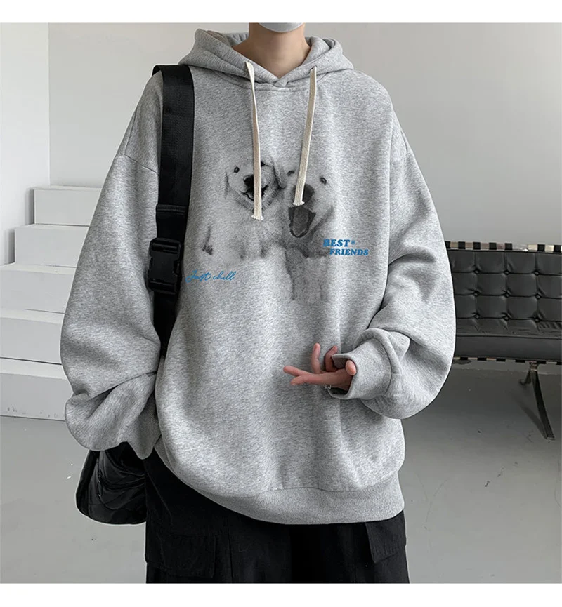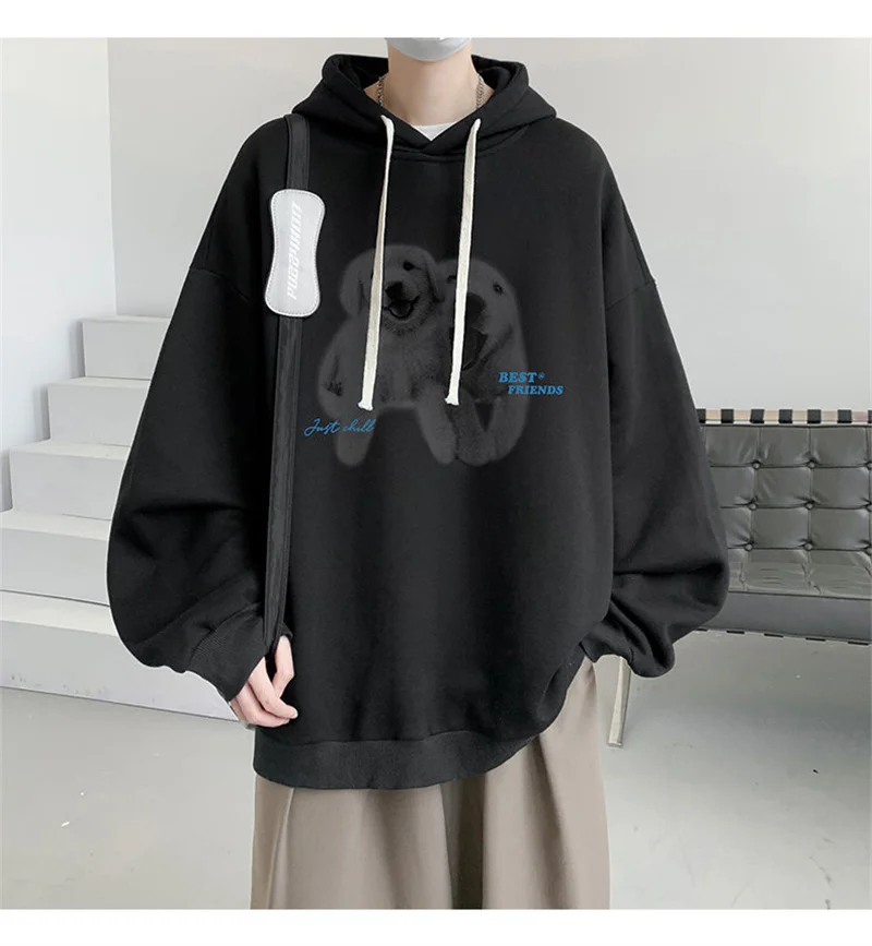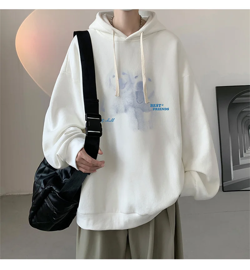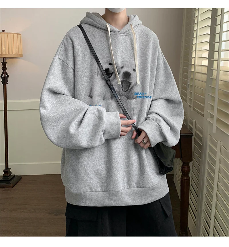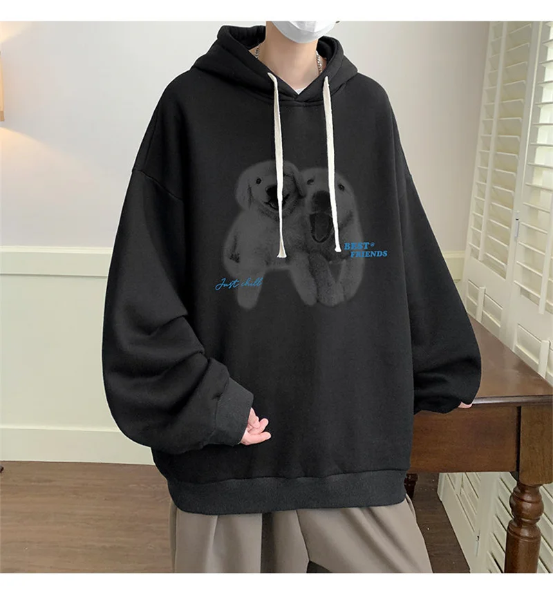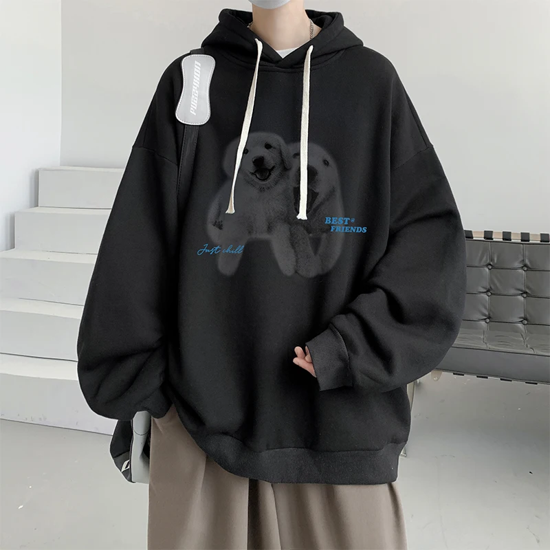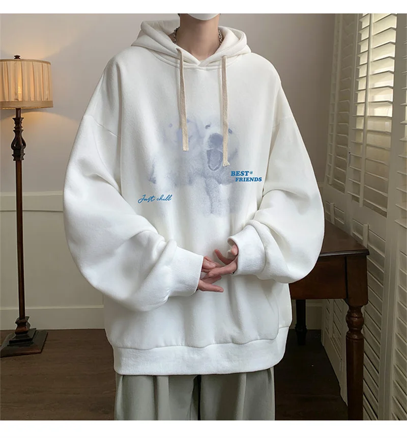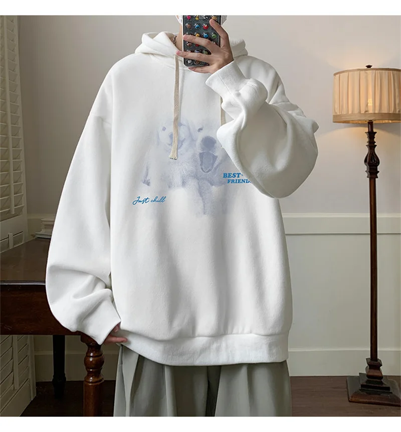 Funny Men's Oversized Hoodie Off White 7XL Hoodies with Hat Oversize for Men Dog Print Man Casual Wear Hoody Male Sweatshirt