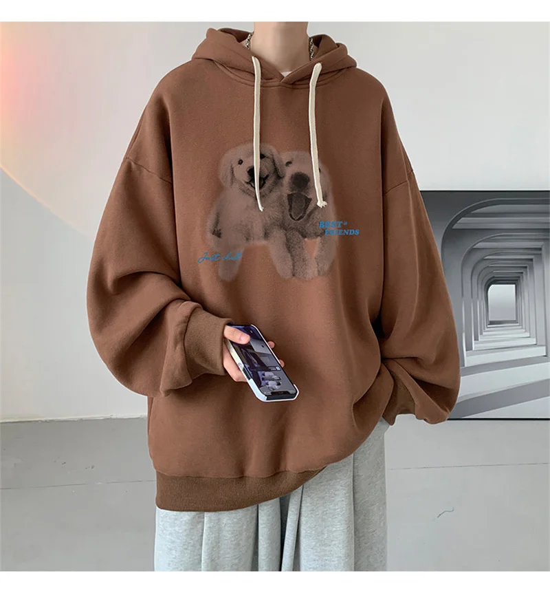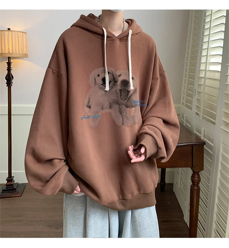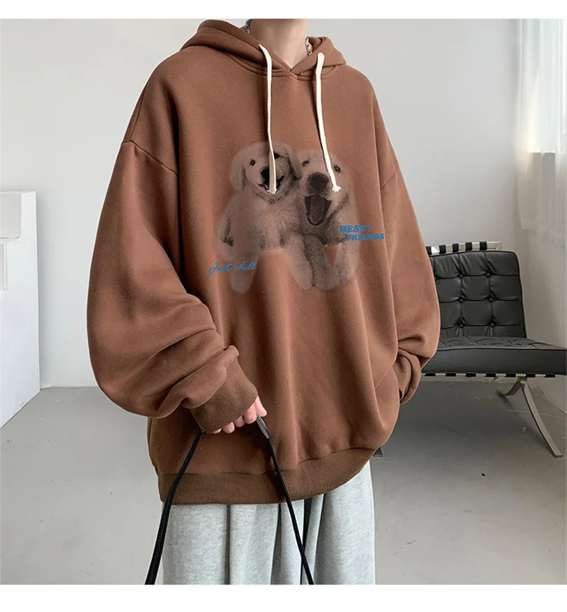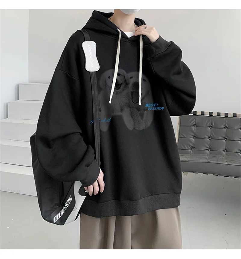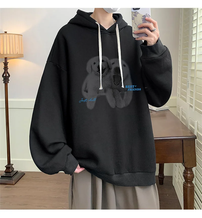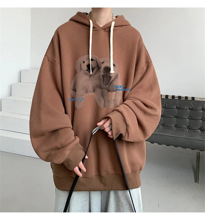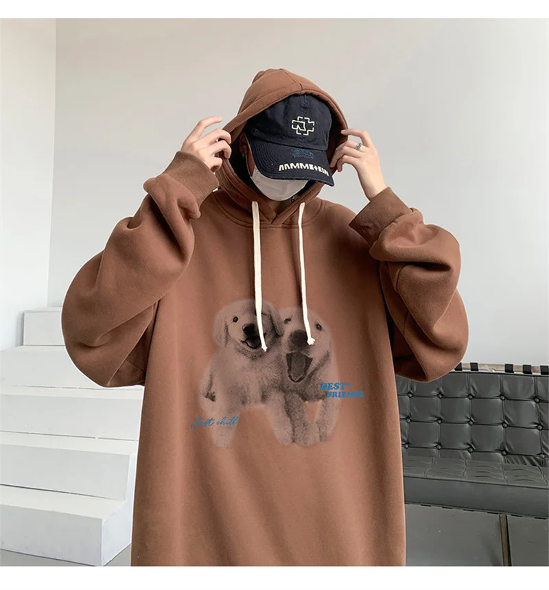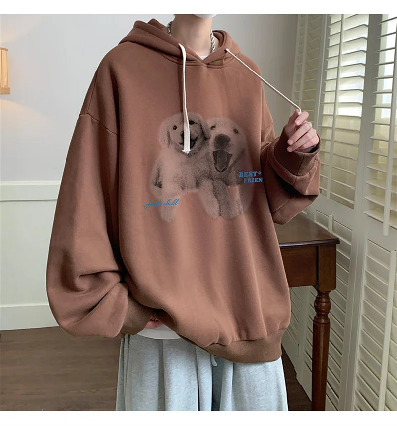 Funny Men's Oversized Hoodie Off White 7XL Hoodies with Hat Oversize for Men Dog Print Man Casual Wear Hoody Male Sweatshirt